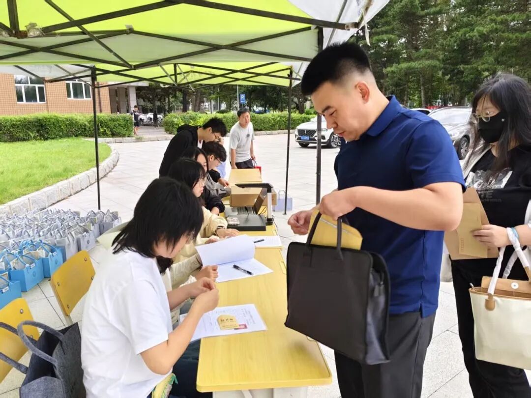 早在新生到来之前,经济管理学院的老师与志愿者们便已抵达迎新现场,投入细致的布置与筹备之中,以最饱满的热情静候2025级MBA新同学的到来。他们不仅为新生逐一发放学院宣传册等入学材料,更贴心准备了为每个人量身定制的新生礼包,以一份份独具温度的细节,传递出学院浓浓的诚意与欢迎。